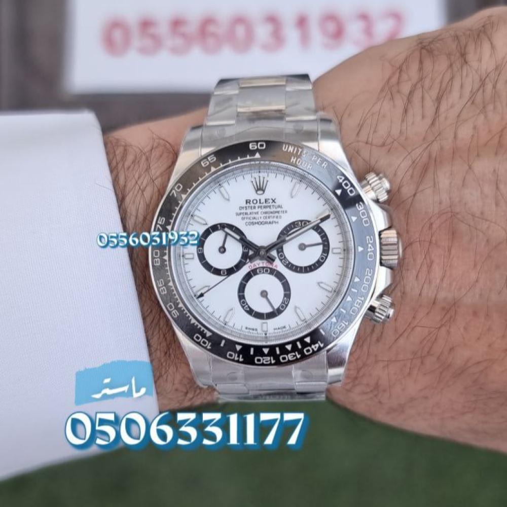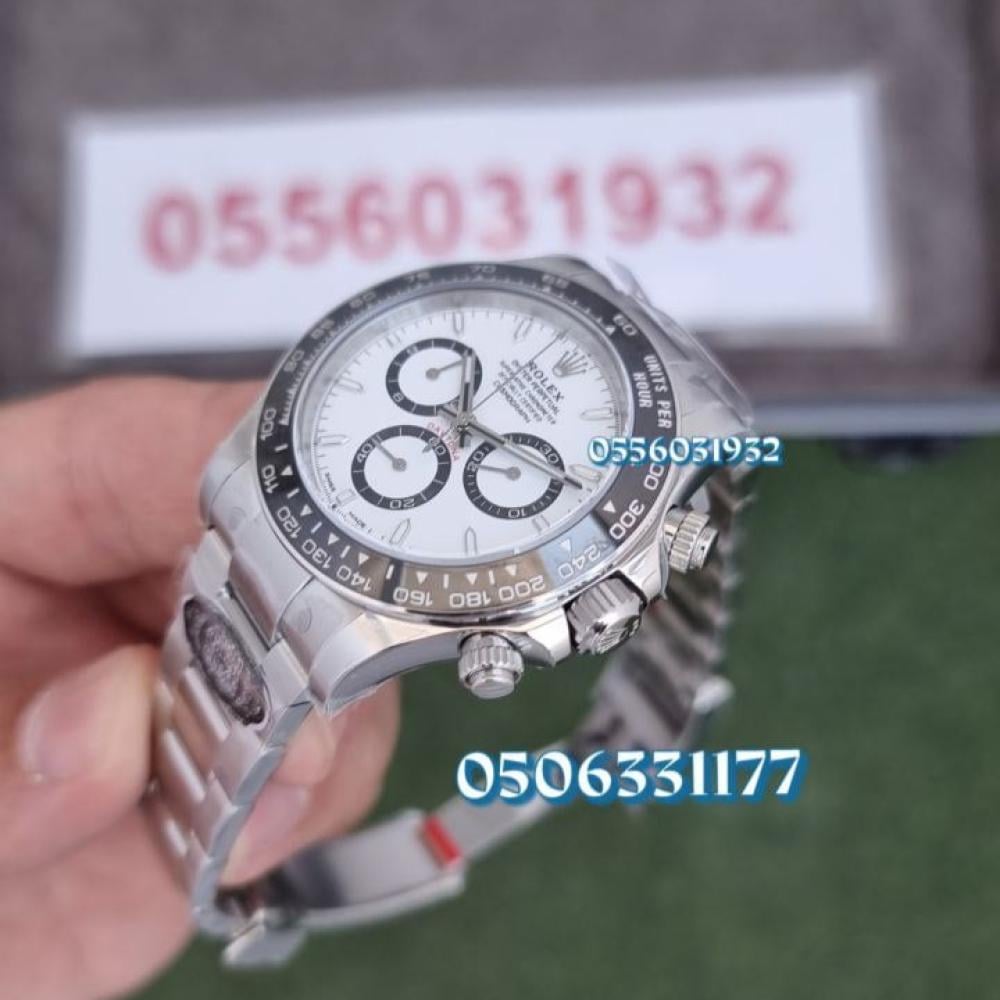 - تصميم أيقوني: المينا الأبيض والأقراص الفرعية السوداء (ال Panda Dial) هي سمة مميزة دايتونا، تجعلها تحفة فنية لا تُنسى.